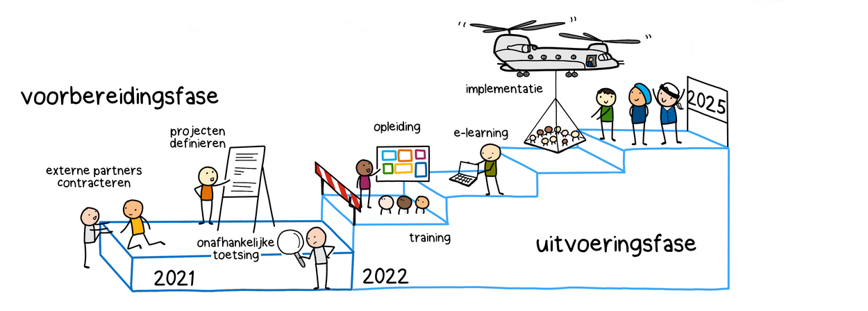 Op basis van de verzamelde data is heel nauwkeurig gekeken waar de grootste veranderingen zitten. Dat is op de werkvloer, maar die worden daar niet zomaar over uitgestort. “We helpen collega’s de veranderingen te absorberen. Als wij mensen gaan opleiden, hebben wij geld om op die plek tijdelijk een ander team neer te zetten om het werk op te vangen. Ik hoop dat de werkvloer daar blij van wordt. Het moet echt een steuntje in de rug zijn. Dat is ook zeker een les uit het verleden.”