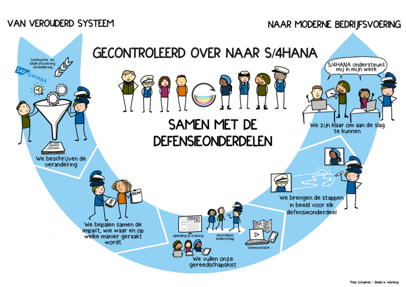Dus is eerst gekeken waar de gebruikers van SAP zitten. “We zijn bij hen langs geweest en bekeken hoeveel opleiding en training ze nodig hebben om óf optimaal met het nieuwe systeem te werken óf in een nieuw proces te kunnen functioneren. Eerst luisteren dus; we hebben het begrepen. Roger! Een herkenbare militaire term, want S/4HANA bekt niet. Het doel van Roger is dan ook het niet moeilijker maken dan nodig is: just in time, just enough.”