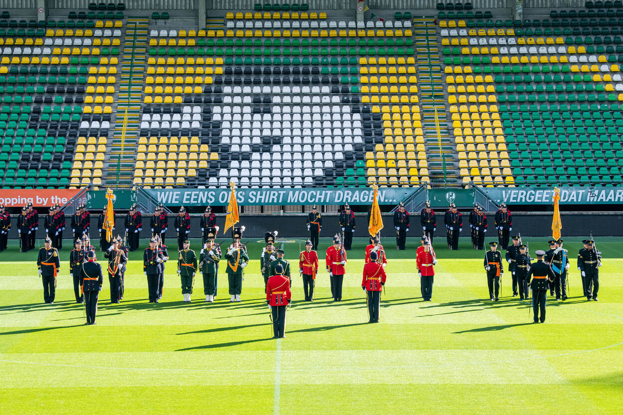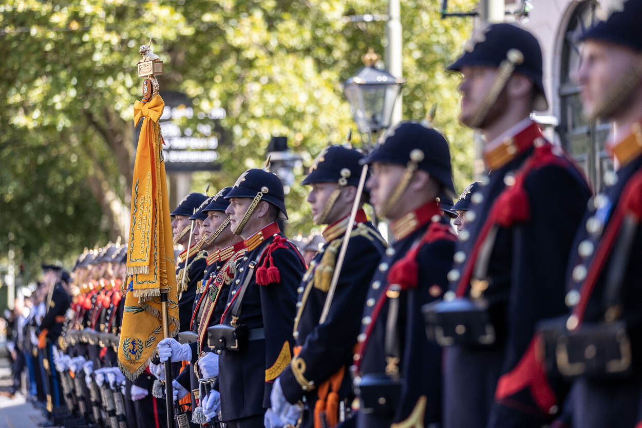 Als beschermer van de parlementaire democratie is de krijgsmacht een van de grote aanwezigen tijdens Prinsjesdag. In de Koninklijke stoet, langs de route en dit jaar bij de Koninklijke Schouwburg waar de troonrede werd voorgelezen. In het stadion van ADO Den Haag werden op meerdere dagen de tenues uitgereikt om op de ochtend van Prinsjesdag zelf nog een keer te oefenen voor de grote finale.
