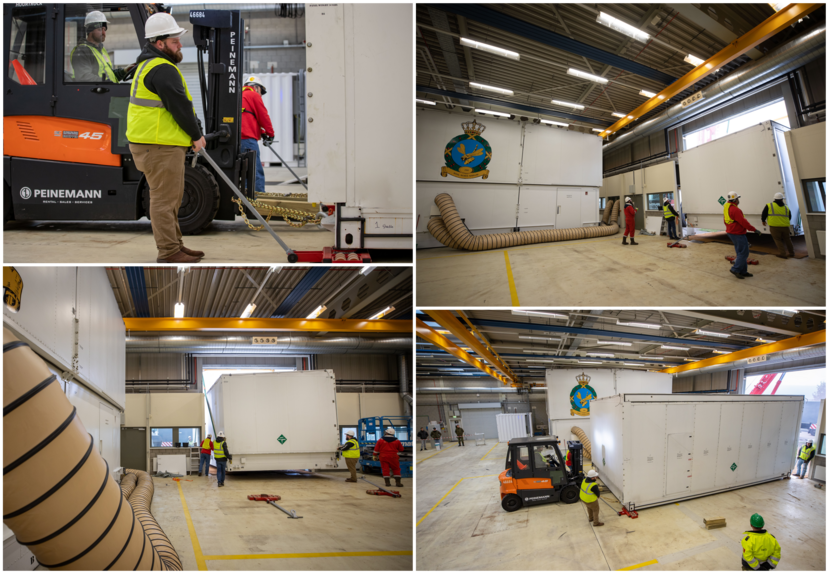 De eerste streepjes licht verschijnen boven vliegbasis Gilze-Rijen als de enorme kraanwagen van Wagenborg de eerste van twee containers zorgvuldig door de opening van een loods manoeuvreert. Projectleider luitenant-kolonel Wil van Rijn (DMO Projecten) kijkt met een brede glimlach naar wat de volgende stap is van een ambitieus plan.