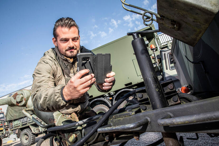 In december is op hoog niveau ondersteuning geboden en zijn stappen gezet om de pilot, die DO-MAINT was, sterker te borgen in de organisatie. Inmiddels is onderkend dat het platform de toekomst is voor het gebruikersonderhoud van het materieel, ook in het kader van informatiegestuurd optreden. Want de papieren inspectiewerkkaart (IWK) vervangen door een digitale oplossing is één ding, de extra functionaliteiten bieden veel meer voordelen. Deemter: “De gebruiker kan een UID (soort QR-code) scannen en weet dan zeker dat de inspectiekaart bij het betreffende materieelstuk hoort. Ook kan hij een foto maken van een defect. Zo’n foto zegt veel meer dan alleen een beschrijving. En alle data die gebruikers invoeren kunnen op termijn gebruikt worden om op grote schaal inzicht te verkrijgen in zwakke punten van materieel tijdens de vredesbedrijfsvoering of op missies wereldwijd. Daar kan dan efficiënter onderhoud op worden gepleegd.”