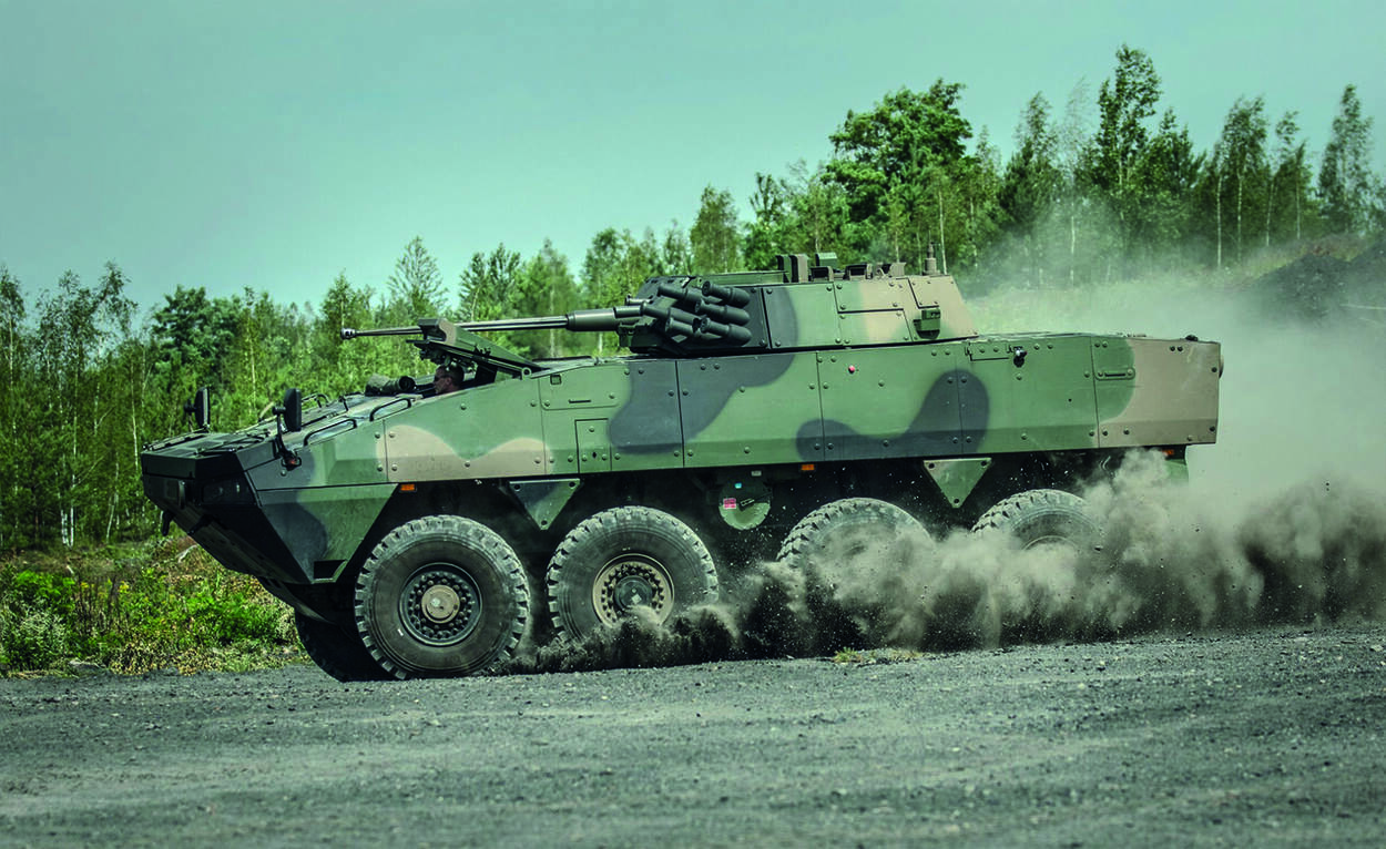 De KTO Rosomak, een 8x8 gepantserd voertuig, vindt zijn oorsprong in de Finse Patria. Rosomak is Pools voor het dier wolverine, veelvraat in het Nederlands. Het pantservoertuig staat goed aangeschreven vanwege zijn mobiliteit, bescherming en vuurkracht, evenals het vermogen om zowel in stedelijke als offroad-omgevingen te opereren. (foto: Pools ministerie van Defensie)