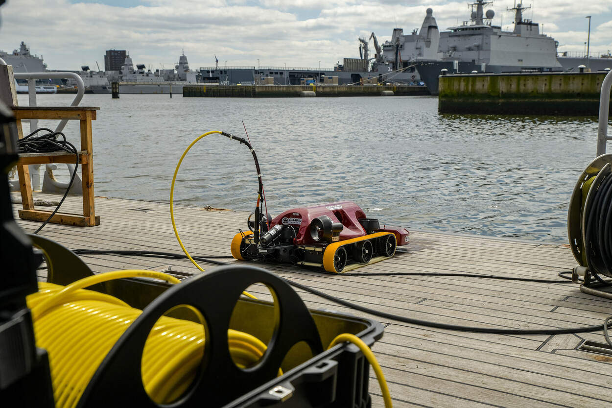 Vanaf eind januari 2023 is het MIND pilotproject pro-actieve schroef- en rompreiniging gestart. Dat heeft als doelstelling om data, kennis en ervaring op te doen over deze methode van reinigen. Met een robot worden experimenten uitgevoerd in de marinehaven van Den Helder. “Met systematische inspecties stellen we de hoeveelheid organische aangroei vast”, vertelt Werner Smakman van de Afdeling Maritieme Systemen. “We hebben reinigingsprotocollen ontwikkeld en testen verschillende reinigingsintervallen.” Inmiddels zijn twaalf marineduikers van de Defensie Duikgroep opgeleid tot operator van de robot. De experimenten worden uitgevoerd vanaf duikvaartuigen en begeleid door ENDURES, het expertisecentrum voor coating, corrosie, antifouling, MIC en schadeonderzoek in Den Helder.
