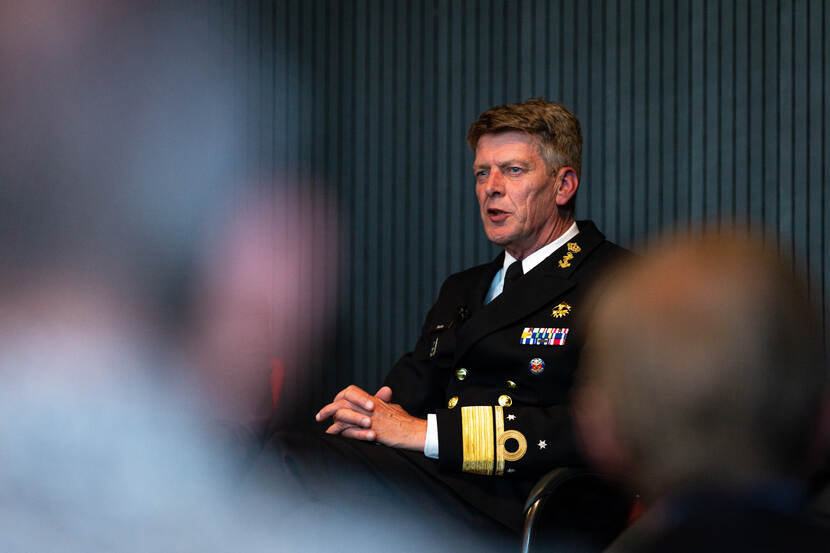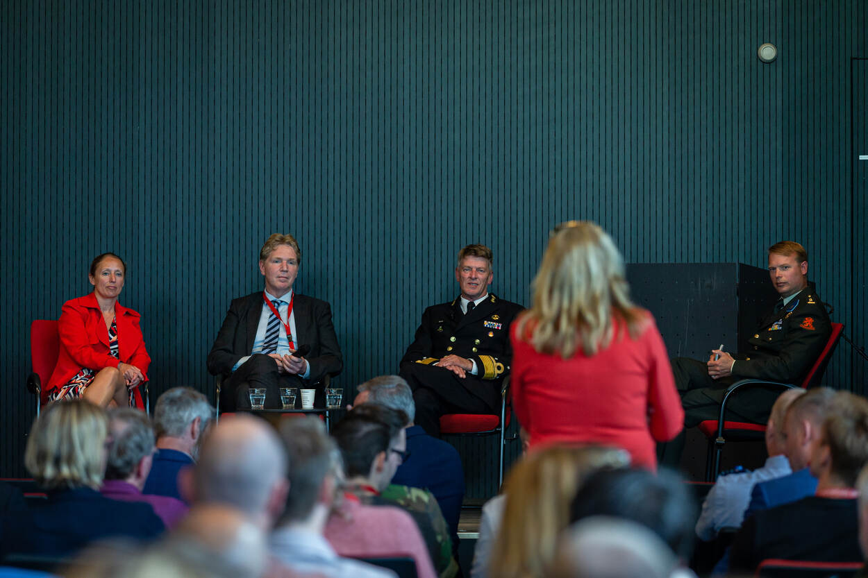 Zijn woorden sluiten naadloos aan op de videoboodschap van staatssecretaris Christophe van der Maat: “Duurzaamheid hoort vroeg in het inkoopproces, zo beschermen we ook wat ons dierbaar is.” Daarover was het panel, met Roos Wijman namens COMMIT, Jan Terlouw namens de NIDV duurzaamheidsplatform (NPMDV) en plaatsvervangend commandant der strijdkrachten vice-admiraal Boudewijn Boots namens de CDS, het roerend eens.