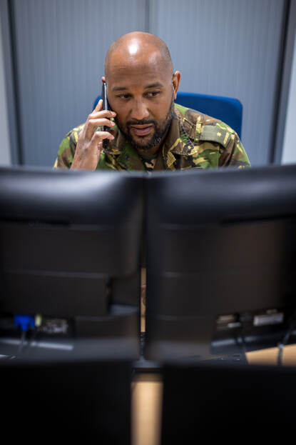 Het Defensie Cyber Security Centrum, een JIVC-onderdeel, heeft als thuisbasis Camp New Amsterdam bij Huis ter Heide. De landmachtmilitair Ed coördineert er de digitale veiligheid voor het Commando Landstrijdkrachten. Hij zet onder meer cyberoefeningen op touw en coördineert het werk van het Rapid Response Team dat ingrijpt bij digitale incidenten op het netwerk. “De daders? Dat kan iedereen zijn. Meestal gaat het om partijen als de inlichtingendiensten van Rusland en China, maar ook om hackers en hun collectieven”, vertelt Ed.