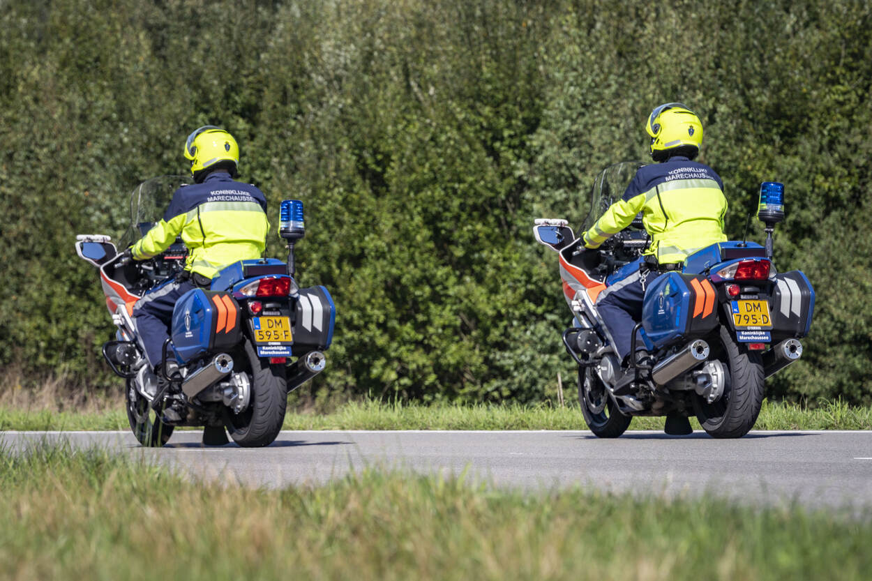 Van blauw-wit-rood naar helder geel. Motorrijders van de Koninklijke Marechaussee worden in een nieuw pak gestoken. “Dit pak is echt tot stand gekomen in samenspraak met het KPU-bedrijf en de leverancier.”