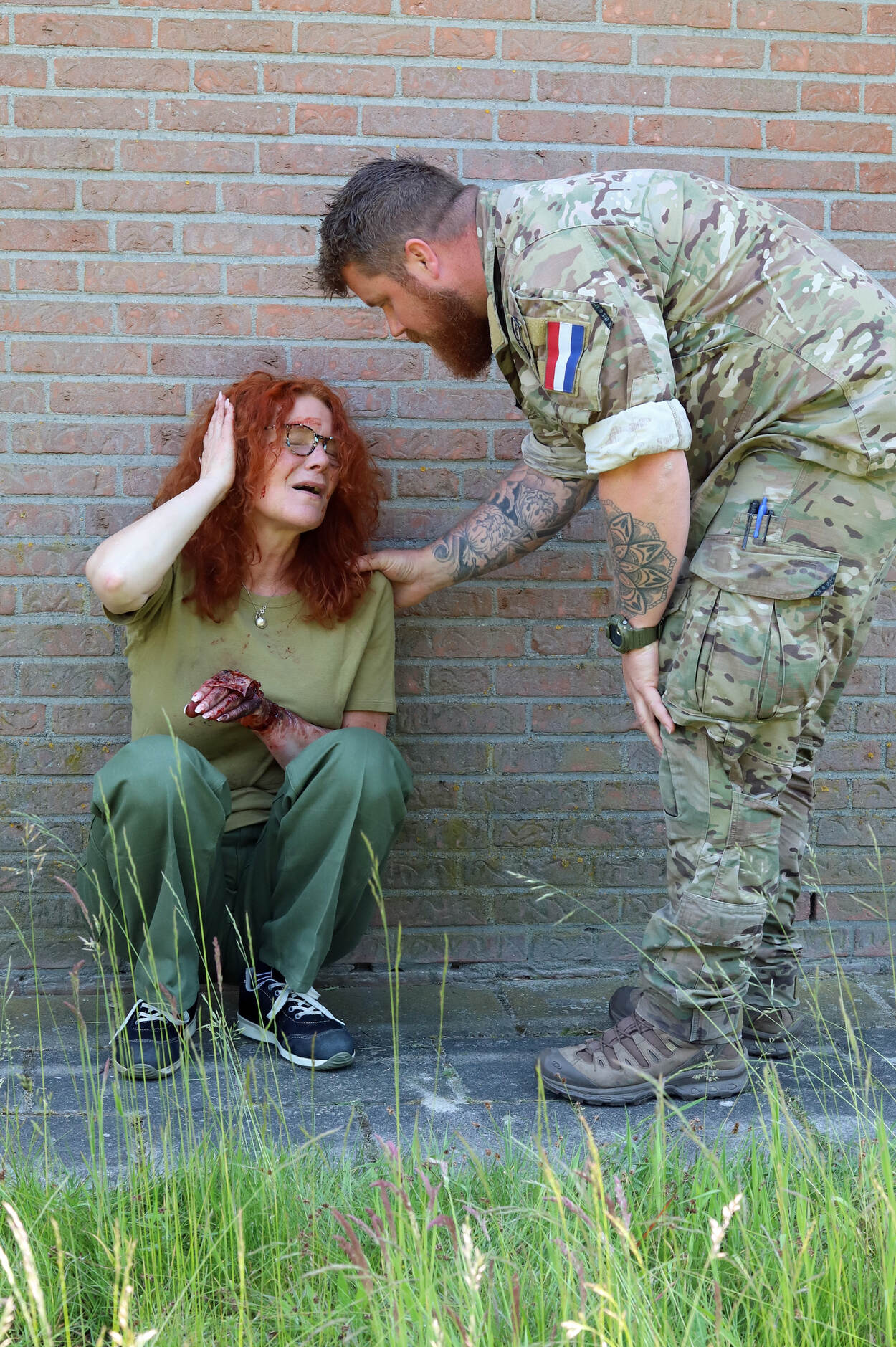 Ingeborg Goutbeek, veiligheidsdeskundige bij het munitiebedrijf (DMunB) – onderdeel van COMMIT - had de (kleinschalige) oefening bedacht. “Dit is zoals het kàn zijn. Met een overtuigend script en levensechte gewonden ”, schetst zij.