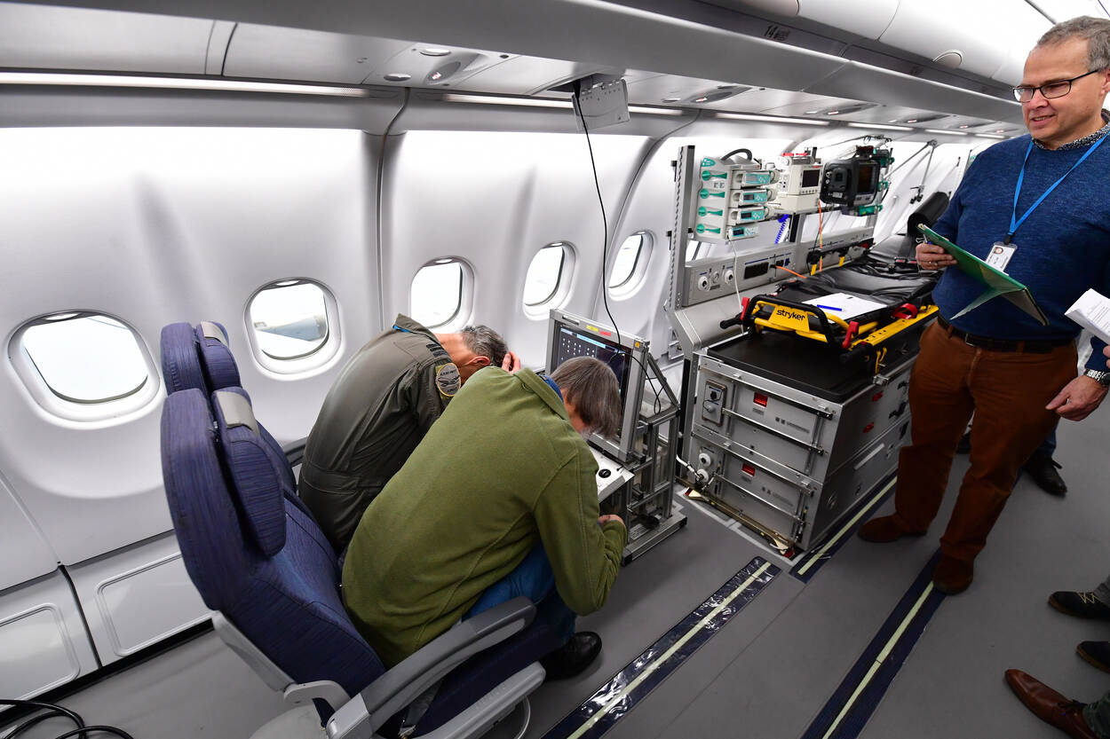 De zogenoemde head strike test aan boord van de A330 Medical Evacuation.