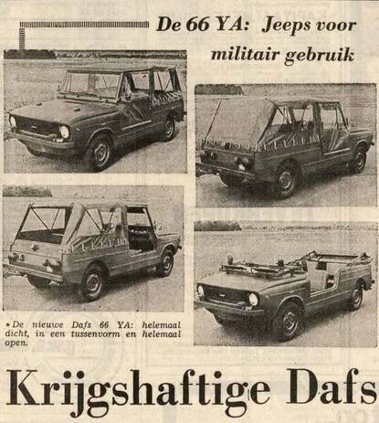 Defensie bestelde uiteindelijk 1201 DAF 66 YA’s waaronder een aantal casco’s. Binnen de Koninklijke Landmacht werd het voertuig gebruikt als commando- en liaisonwagen, voertuig voor de aalmoezenier en allerlei ondersteunende algemene diensten. Voor de Koninklijke Marechaussee was de DAF een perfecte colonnebegeleider. Vanwege de variomatic had hij zowel voor- als achteruit een hoge acceleratie en de maximumsnelheid lag ook een stuk hoger dan de logge Landrover 109 die tot dan toe werd gebruikt. De DAF deed tot 1994 dienst bij verschillende defensie-onderdelen om vervolgens te worden verkocht aan particulieren. Tegenwoordig bestaan er nog zo'n 550 waarvan het grootste deel volgens RDW-gegevens nog rijdt. Bijna vijftig jaar na de introductie denken vele (dienstplichtige) militairen met plezier terug aan dit stukje Nederlands vernuft.