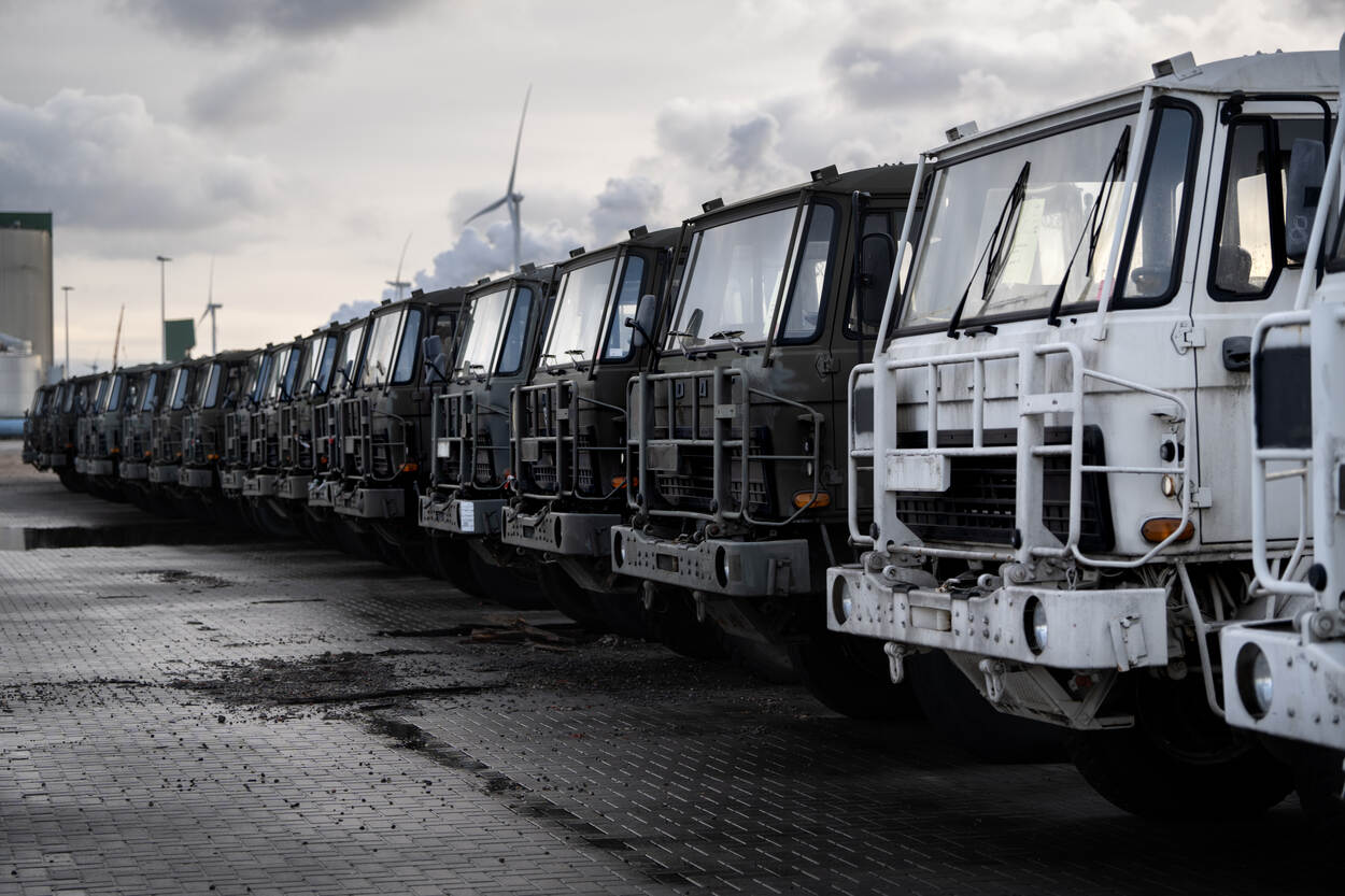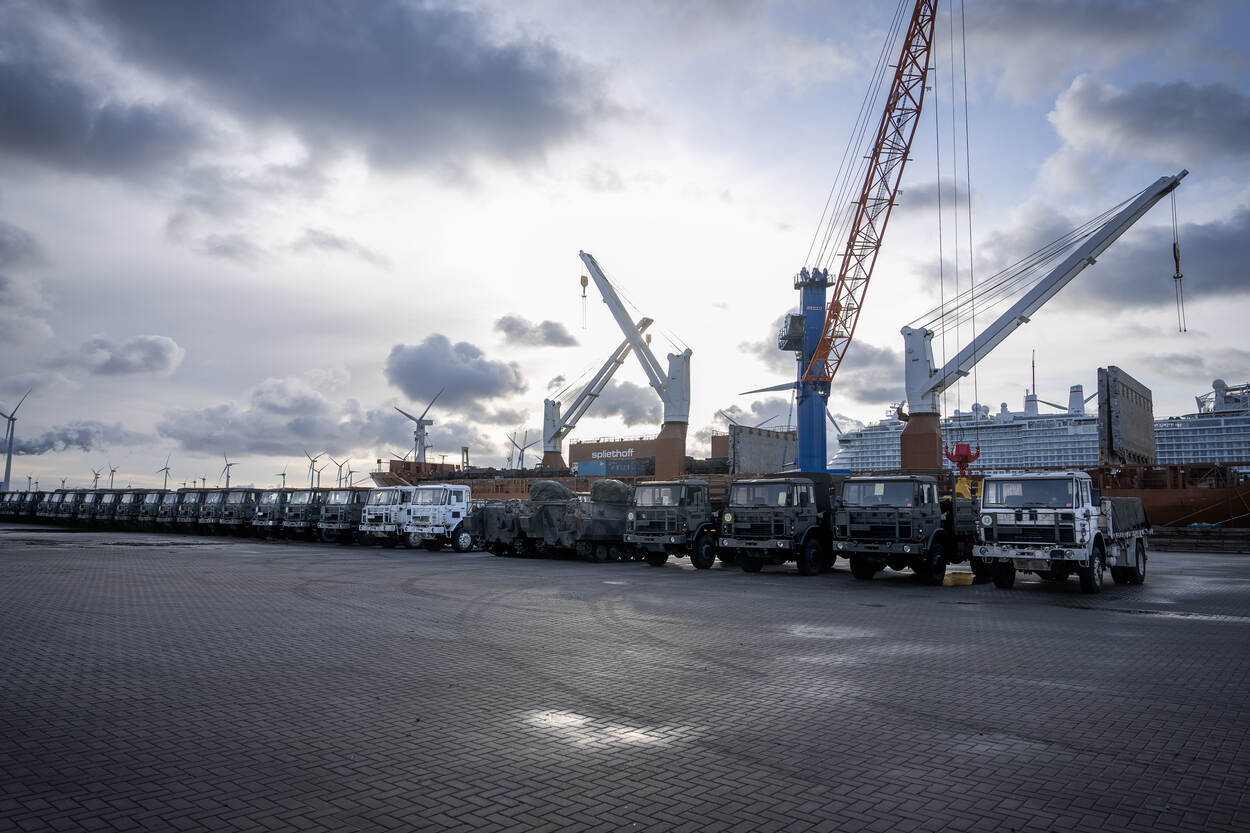 Als het Projectteam Afstoting Grondgebonden Systemen van COMMIT zijn visitekaartje ooit afgaf, dan was het wel de afgelopen weken. Maar liefst 200 DAF YA-4442 vrachtwagens in verschillende configuraties, 53 YPR-pantservoertuigen en twee containers met reservedelen en gereedschappen werden naar de Eemshaven vervoerd om op een Nederlands schip richting Jordanië te worden gezet. Allemaal ‘bejaard’ materiaal van het Commando Landstrijdkrachten dat samen 2.667.500 kilo weegt en aan het land in het Midden-Oosten is verkocht.