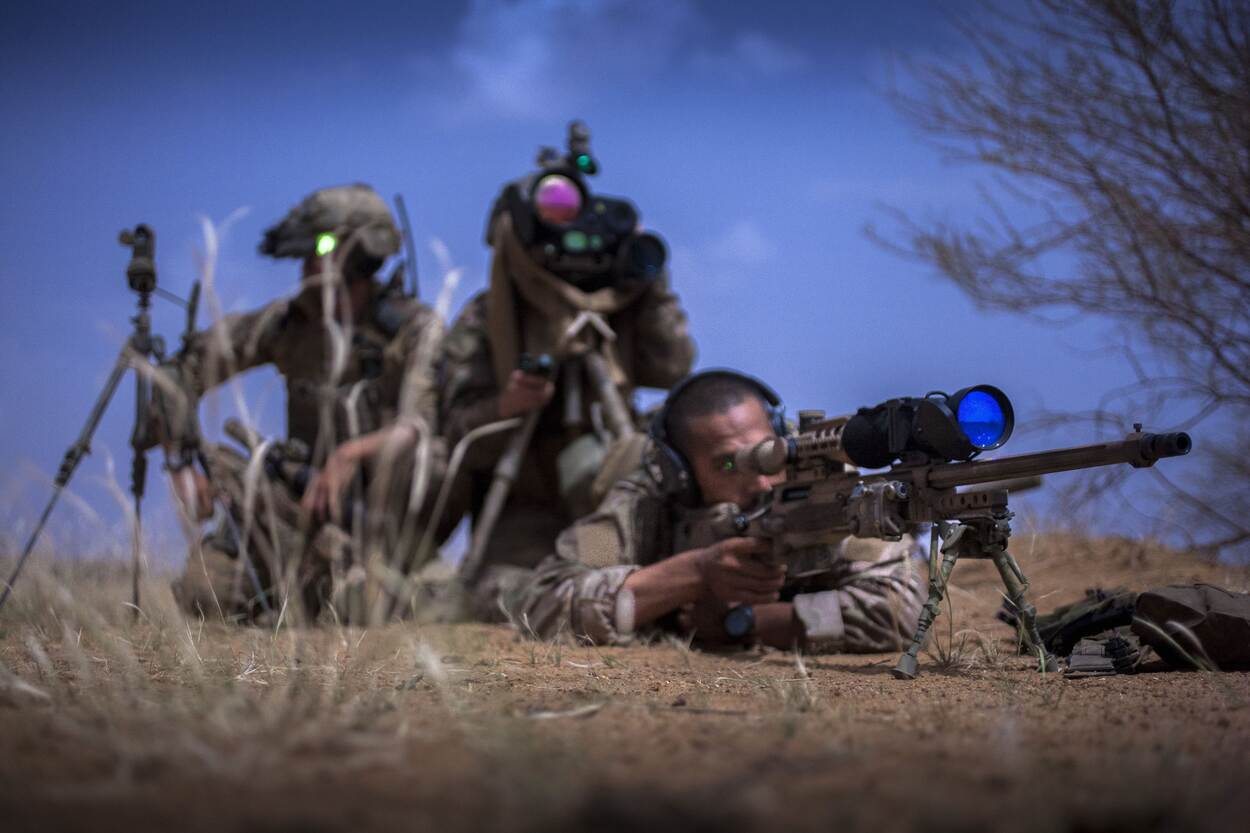 ‘Stalken’, speuren, berekeningen maken, afdrukken en net zo belangrijk: zelf ongezien blijven. Voor wie als sniperteam op pad gaat, is het hebben van geduld een cruciale eigenschap. Als alles goed gaat, kunnen ze het ‘reguliere’ scherpschuttersgeweer Accuracy AX 338 in stelling brengen. Diverse eenheden, zoals JISTARC en 11 Luchtmobiele Brigade, kennen sniperteams. Van laatstgenoemde is sergeant-1 Dirk commandant.