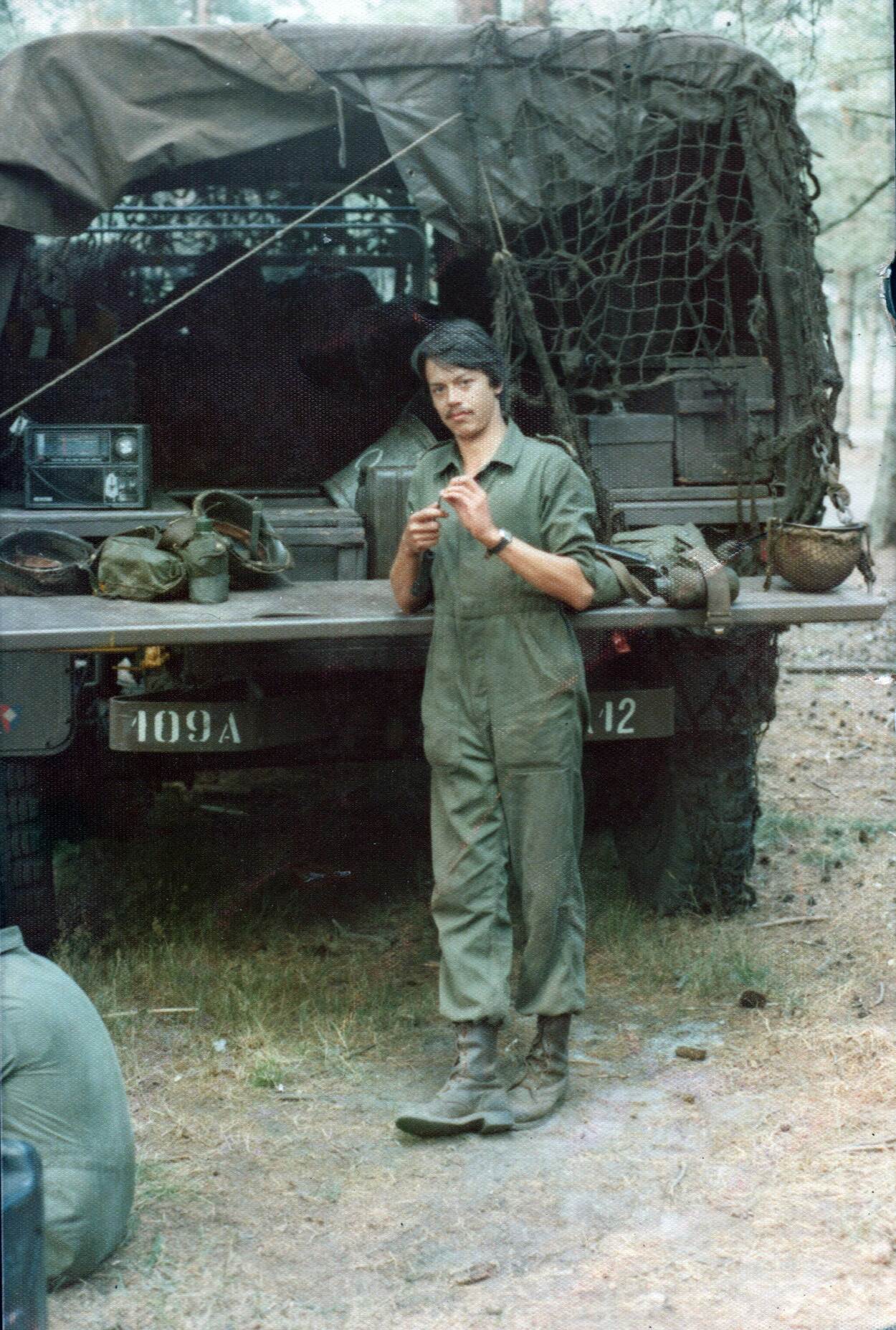 De vader van Jeffrey Middel was KNIL-militair geweest en ook Jeffrey koos voor het krijgsvak. Na de Koninklijke Militaire School, een artillerie-opleiding en een ‘cursus wachtmeester opzichter ballistische raket’ kwam hij in maart 1975 terecht bij de 109e Afdeling Veldartillerie. Als beroeps had hij een aantal dienstplichtigen onder zich en hij zag het als een sport om van al die verschillende karakters een goed samenwerkende eenheid te smeden. En ook de afstand tussen de rangen wilde hij verkleinen. “Mijn chauffeur-lanceerinrichting was mijn maatje. Korporaals, TS’ers, onderofficieren en officieren wilde ik bij elkaar hebben. We moesten het samen doen.” Dat lukte Middel door een saamhorigheidsmoment tijdens een lange drieweekse oefening in Duitsland te organiseren. “Ik trommelde een paar collega’s op en samen hebben we rijsttafel geserveerd. Samen koken, dat gaf de verandering. Want ik vond dat de kanonnier, als ik iets fout deed, zou durven zeggen: ‘Wachtmeester, dat gaat niet goed’.”