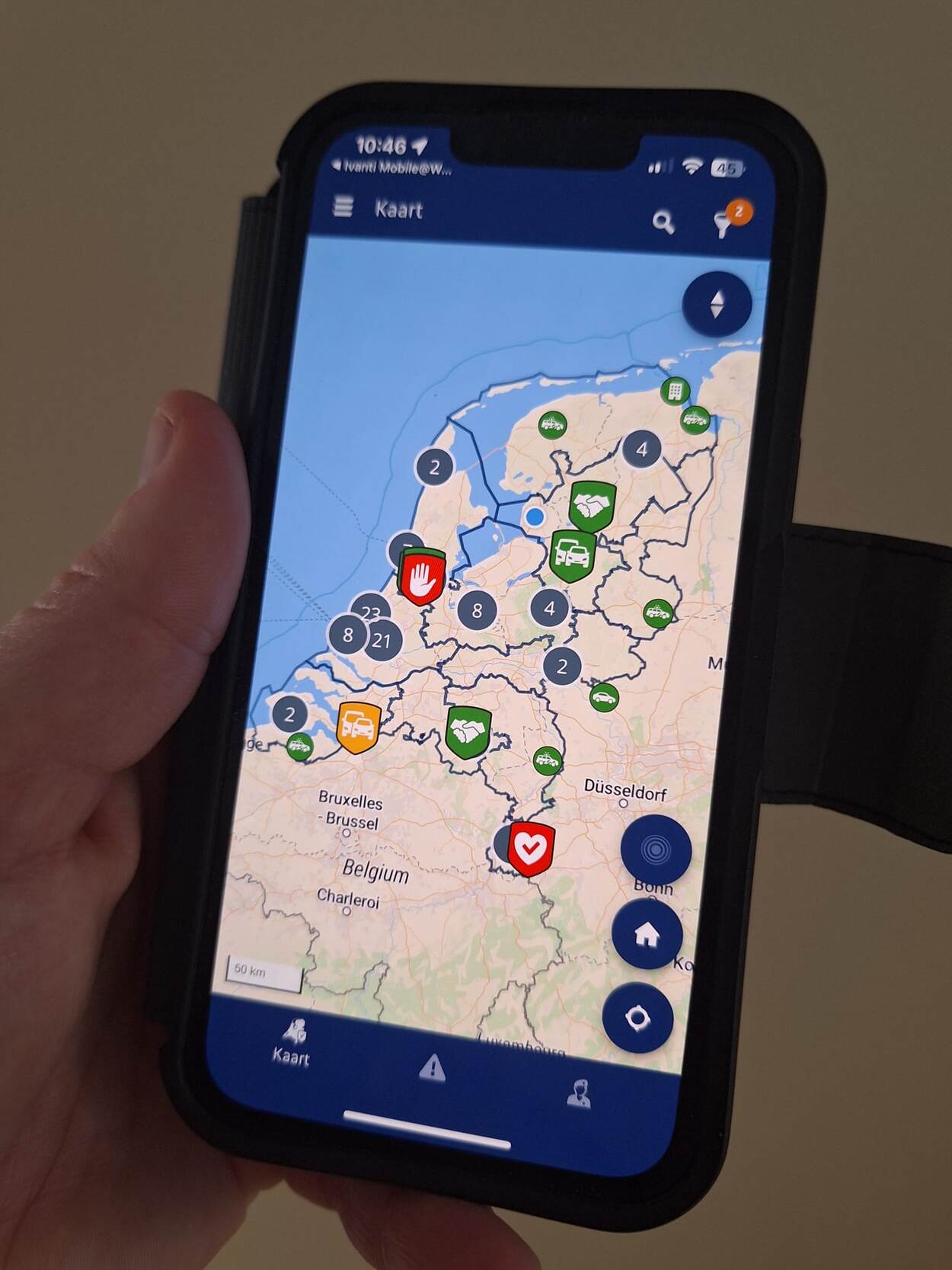 In totaal zijn er dertien van dit soort beveiligde, externe verbindingen. Zo komen in de meldkamer op Camp New Amsterdam bijvoorbeeld ook alle ‘prio 1-meldingen’ van de politie binnen. Daarbij is sprake van levensbedreigende situaties. De meldingen blijven tien minuten in beeld. “Als er binnen vijf kilometer een Marechausseemedewerker is, zien we dat op de kaart. Onze meldkamer heeft dan contact met die van de politie om te bespreken of we kunnen helpen”, legt Sipke uit. Sinds deze koppeling er is, werden naar alle waarschijnlijkheid meerdere mensenlevens gered. Want zij ontvingen daardoor sneller medische hulp. “Je kunt zo het verschil maken.”