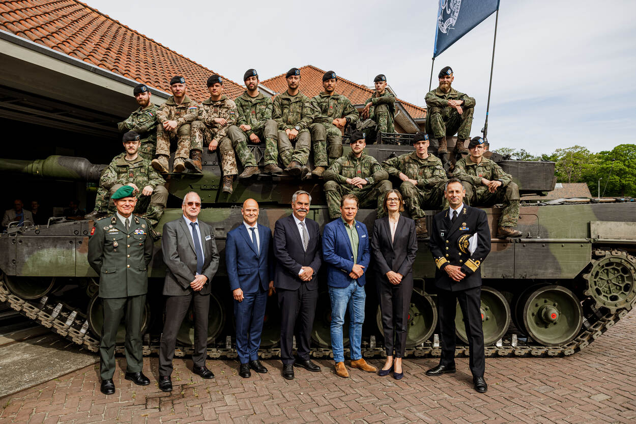 De ondertekening bij het Cavaleriemuseum Amersfoort trok veel belangstelling. “Dit leeft enorm”, merkte inkoopmanager Jaapjan van COMMIT al tijdens het inkoopproces. Speciaal voor de plechtigheid kwamen twee Leopard 2A6-gevechtstanks uit Duitsland naar de Bernardkazerne. Tegen de achtergrond van de imposante ‘koning van het slagveld’ zetten de betrokken partijen hun handtekening. “Mooi dat Nederland volledig terug is in de Leopard-familie”, sprak Ralf Ketzel van de Frans-Duitse fabrikant KNDS tijdens de ondertekeningsceremonie.