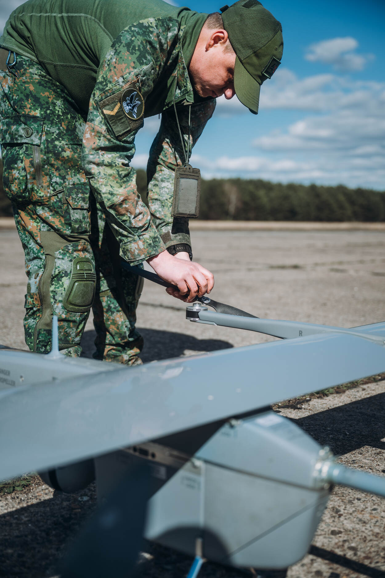 Een drone die maar weinig nodig heeft om te kunnen functioneren. Zo laat de EOS C VTOL zich het beste omschrijven. Het onbemande luchtvaartuig is sinds augustus in het bezit van 42 Pantserinfanteriebataljon Limburgse Jagers (42BLJ). Sergeant Jessey is een van de operators. “Als we een straal van vijftien meter om de drone vrij hebben, dan kunnen we al opstijgen en landen. Daarnaast heeft hij een VTOL-motor waardoor hij verticaal kan opstijgen. Daarna schakelt hij over naar de voormotor om batterij te besparen. Zo kunnen we vanaf redelijk beperkte situaties toch goed vliegen en biedt dat veel mogelijkheden waar vanuit we kunnen opereren.”