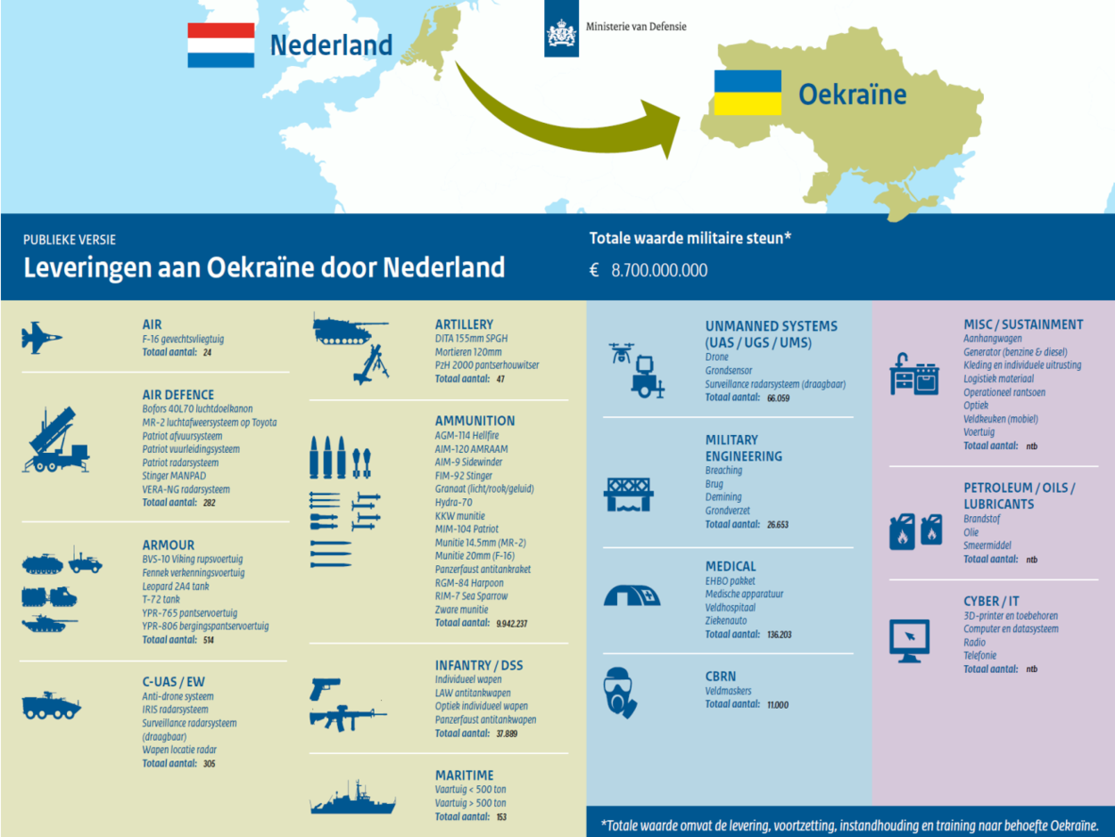 Bij de voorbereiding van de inkoopopdracht onderzoeken de Task Force Oekraïne en het team van de KTZ via de branchevereniging Nederlandse Industrie voor Defensie en Veiligheid (NIDV) en de Nederlandse bedrijven wat op korte termijn leverbaar is. De miljarden moeten namelijk binnen één kalenderjaar worden uitgegeven. “Bij normale, Nederlandse, opdrachten kunnen we budget doorschuiven naar volgend jaar. Bij Oekraïne-steun verbieden de financiële regels dat. Het dwingt ons om snel te handelen, terwijl een inkoopproces soms maanden kan duren.”