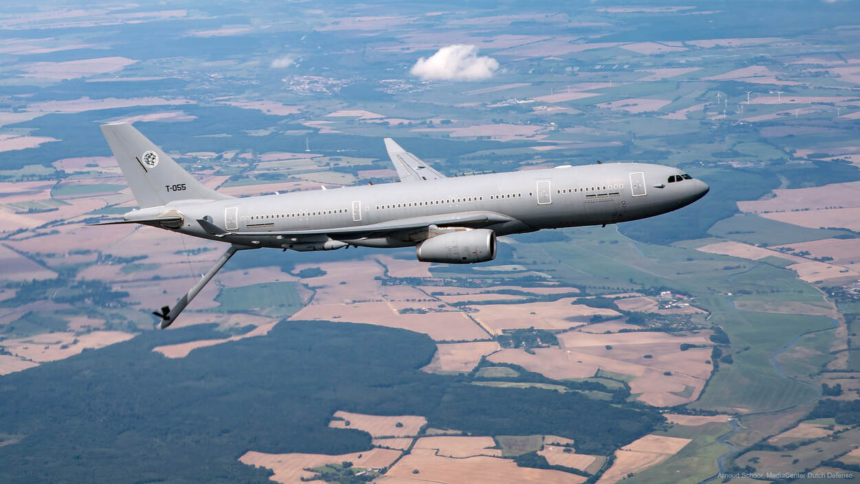 Hiervoor gaat een A330neo-lijnvliegtuig in transformatie, die naar verwachting in 2029 bij de Koninklijke Thaise Luchtmacht (RTAF) in dienst komt. Voor zo’n €350 miljoen dollar heeft de Airbus A340-500 daarmee een opvolger. De tanker krijgt een slang- en sleepsysteem (hose-and-drogue system) en een tank (refueling) boom (foto). Bijzonder is ook de VIP-ruimte in deze A-330, mochten hoogwaardigheidsbekleders instappen. (Foto: Defensie)
