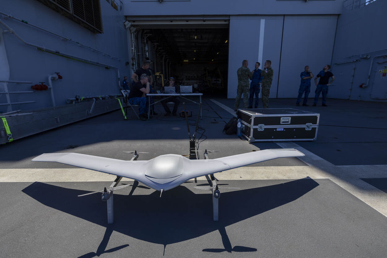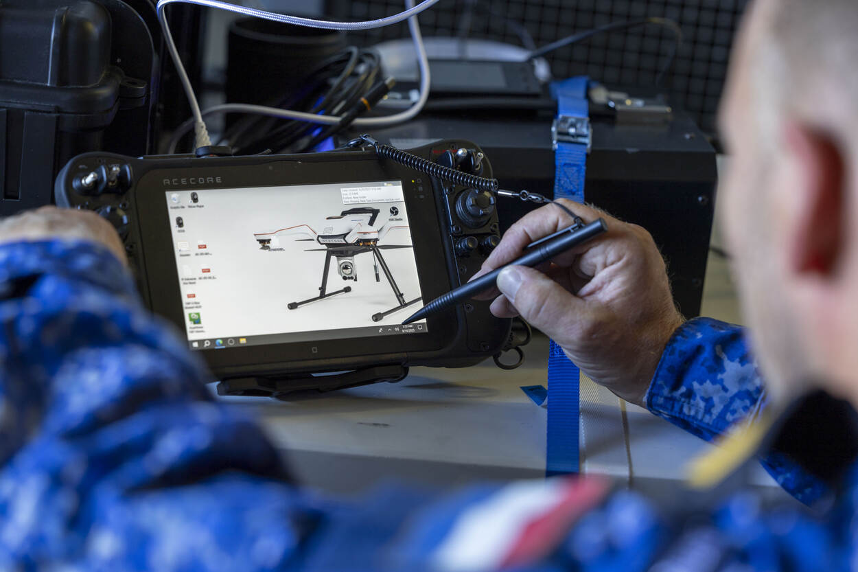 Het Commando Materieel en IT (COMMIT) werkte tijdens REPMUS met drie types: de DeltaQuad EVO, de Acecore Noa en de High Eye Airboxer. Deze Unmanned Aerial Vehicles (UAV) zijn gemaakt voor verkenning en elektronische oorlogsvoering. Alle drie zijn in staat om op grote afstand van het moederschip te opereren, maar of ze ook daadwerkelijk worden aangeschaft, is volgens Ferdinand nog geen gelopen race. “Als je lang en ver wil vliegen, biedt een ontwerp met vleugels uitkomst. Bij het landen, is een helikoptersysteem het handigst. Ook doordat de marine liever geen vergaande aanpassingen aan haar schepen wil doen.” Een drone met VTOL-eigenschappen (Vertical Take-Off and Landing) zou uitkomst kunnen bieden. Helaas kleven hier soms voor- en nadelen aan. Een mechanisch simpele drone kan moeilijke software nodig hebben om te sturen. En andersom. “Kortom, de industrie is er nog niet uit.”