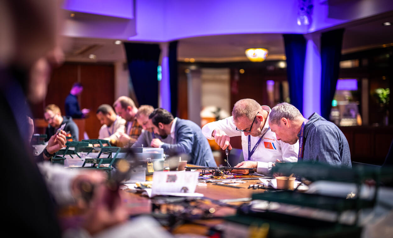 De Delftse club was tijdens Purple NECtar X Innovation in Defence flink in trek, want de workshop drone bouwen zat goed vol. “Halverwege de eerste dag waren de beschikbare toestellen al afgebouwd. We hadden capaciteit voor 24 man aan de tafel, er hadden zich 350 deelnemers aangemeld.”