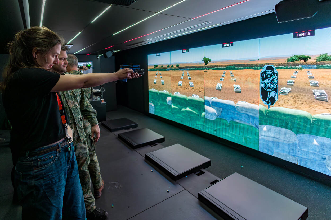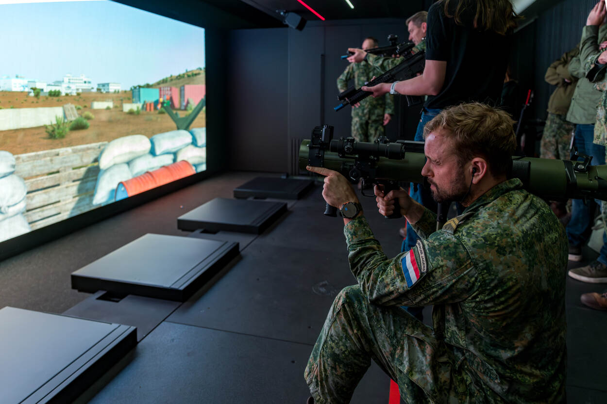 Ook de directeur Programma Opschaling bij Defensie, generaal-majoor der Mariniers Kees Schellens, is bij de presentatie aanwezig. Niet alleen om de simulator te zien en te beoordelen, maar ook om ‘m daadwerkelijk te testen. Zoals ook de plaatsvervangend commandant 11 Luchtmobiele Brigade, Larry Hamers, doet. Zij en andere genodigden kunnen hun bekwaamheid testen in verschillende scenario’s. Niet alleen met persoonlijke wapens als de Colt en Glock, maar ook de beoogde opvolger van de Panzerfaust, de Carl Gustav M4 (Saab). De truck gaat het komende jaar het land in voor de training tijdens 3 basisopleidingen. “Met zo’n mobiel systeem kun je de opleiding verkorten; de militairen hoeven niet meer te reizen voor de schiettraining”, legt overste André uit. Na een evaluatie valt de beslissing of meer mobiele KKW-simulatoren moeten worden aangekocht.