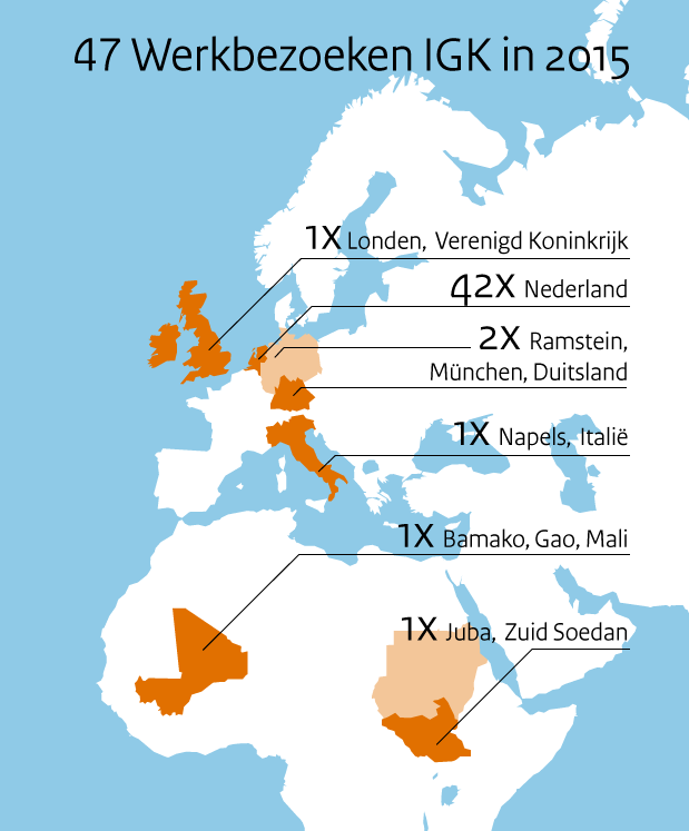 Soms is het vanwege de situatie ter plaatse niet mogelijk dat ik een bezoek breng aan een missiegebied. Dat was bijvoorbeeld het geval met de militairen van de Koninklijke Marechaussee die deel uitmaakten van de VN-missie UNMISS in Zuid-Soedan. Ik heb de rollen toen omgedraaid en de ‘werkvloer’ bij mij op De Zwaluwenberg uitgenodigd. Dat is goed bevallen, zo kon ik in een halve dag met personeel van twee rotaties spreken. Toch kan het een echt werkbezoek nooit helemaal vervangen. Het is immers belangrijk om de omstandigheden ter plaatse te ervaren en ook om iets van de sfeer op de werkvloer te beleven en ter plekke het gesprek aan te gaan.