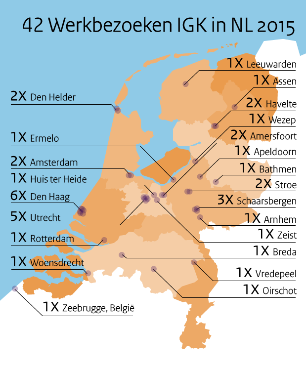 De meest oorspronkelijke taak van de IGK is het gevraagd én ongevraagd adviseren van de Minister over alle vraagstukken die de krijgsmacht raken. Een van de belangrijkste werkwijzen daarbij is het afleggen van werkbezoeken. Het instituut streeft ernaar in een cyclus van drie jaar alle eenheden, directies en missies in binnen- en buitenland te bezoeken. Daarbij is ruimte om in te spelen op actuele ontwikkelingen die gevolgen hebben op de werkvloer. Een ad hoc bezoek in oktober 2015 aan de nieuwe High Risk Beveiligingseenheid van de Koninklijke Marechaussee, die de beveiliging rondom Joodse scholen en instellingen overnam van de Nationale Politie, is hiervan een sprekend voorbeeld.