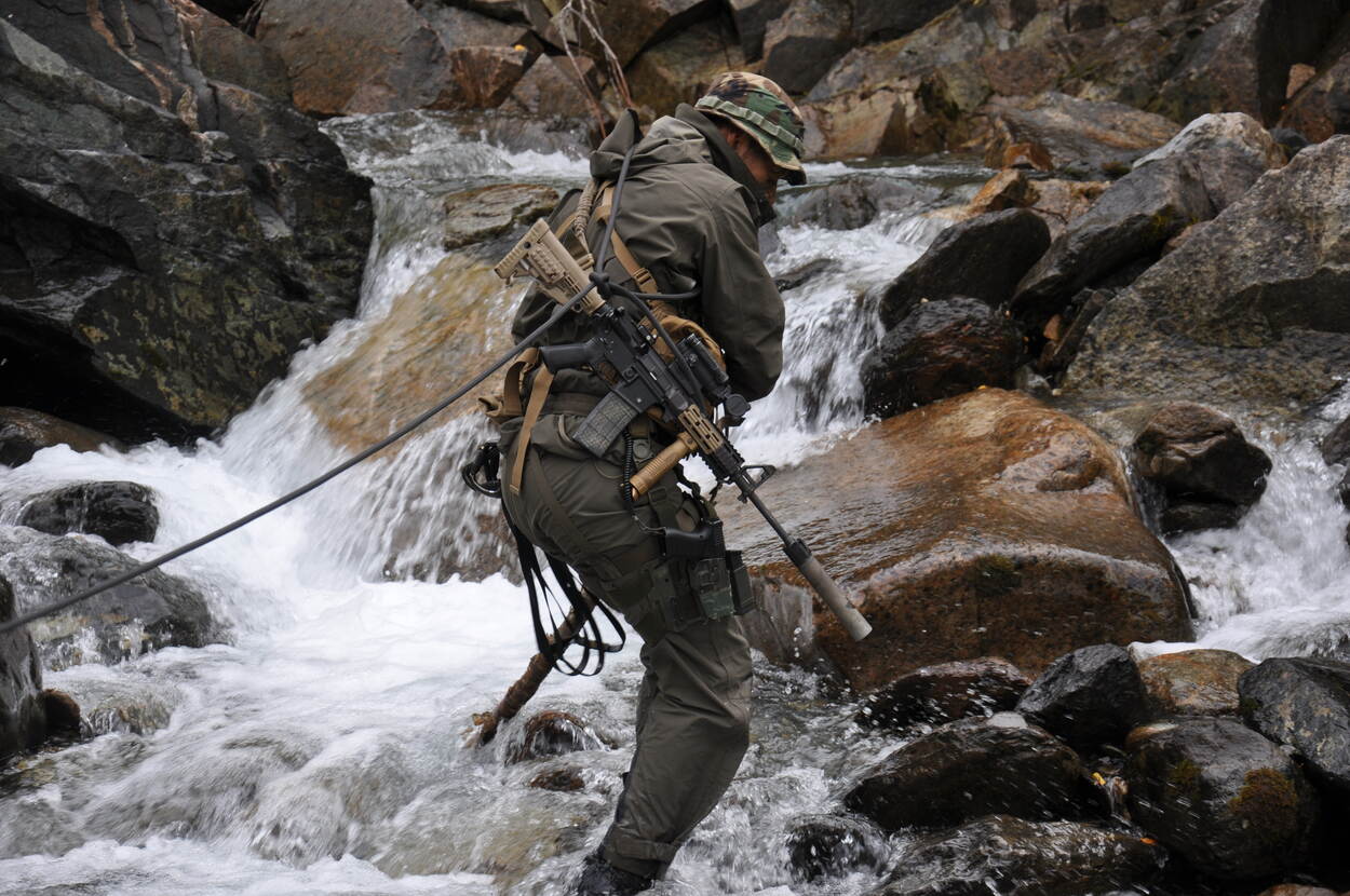 - Deze ervaringen pasten de mannen toe tijdens de Mountain Warfare Training. Daarin een veelvoud van operaties binnen een tactisch scenario. Tot de proeve van bekwaamheid behoorde bijvoorbeeld een vertical assault, lees: werken op hoogte in extreem terrein en abseilen met uitrusting. Verder was er een survival, inclusief ‘ongeplande’ overnachting, met minimale middelen. Uiteraard ontbrak ook de rivieroversteek niet, door middel van een overspanning met touwen.