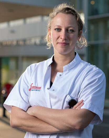 Misschien verrassend, maar Nijhoff vindt het persoonlijk niet heel spannend om in zo’n besmettelijke omgeving te werken. “Ik zorg dat ik me voor elke patiënt die de verdenking heeft op een COVID-19 infectie of bij wie dat is aangetoond, goed aankleed met beschermende middelen. Dat zijn een schort, bril, mondmasker en handschoenen. Ook maak ik mijn stethoscoop, ooglampje en pen keer op keer goed schoon. Daarnaast was ik natuurlijk om de haverklap mijn handen en gebruik ik handalcohol."