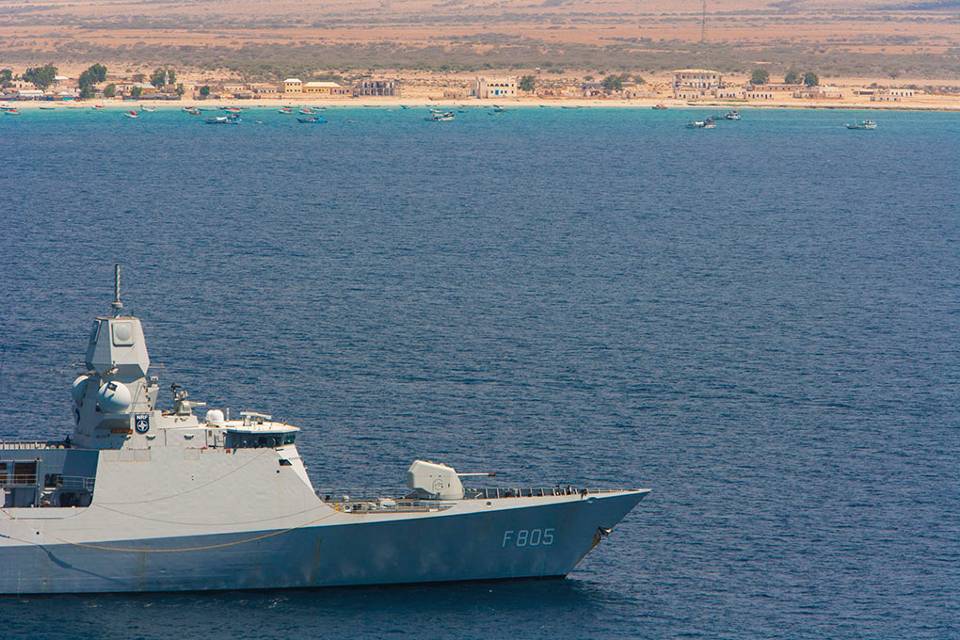 Ter bestrijding van piraterij in de Hoorn van Afrika lopen er diverse initiatieven. Nederland neemt in 2014 2 keer met 1 schip deel aan de EU-missie Atalanta en met 1 schip aan de NAVO-missie Ocean Shield. Het mandaat voor beide missies geldt tot en met eind 2014. Daarnaast zet Nederland zogenaamde Vessel Protection Detachments in, teams van bewapende mariniers, voor de bescherming van koopvaardijschepen. Op dit moment keert het luchtverdedigings- en commandofregat Zr. Ms. Evertsen terug uit Ocean Shield. Van half mei tot eind augustus neemt Nederland met het LCF De Zeven Provinciën deel aan Atalanta.