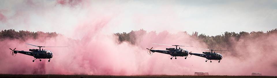 historisch: meerdere Alouette III’s in de lucht. Het was net geen wedergeboorte