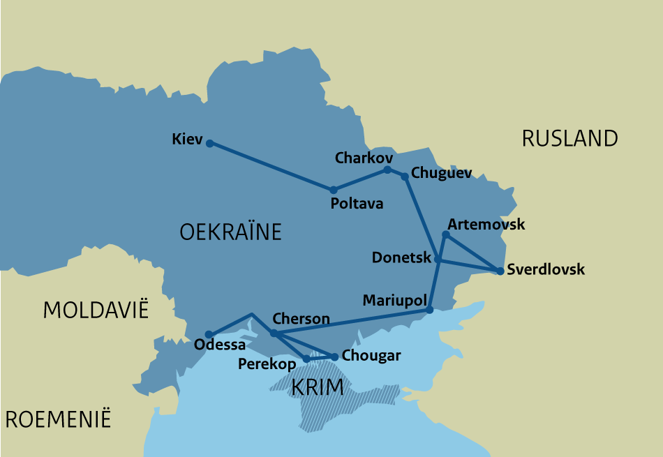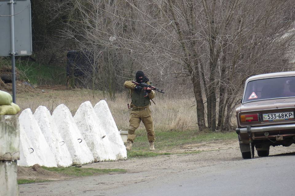 Het Zuid-Oekraïense Kherson is de uitvalsbasis voor de 47 man tellende internationale waarnemersmissie. “De Krim zelf was al afgesloten op het moment dat we aankwamen en dus bleef niets anders over dan vaststellen wie er aan deze nieuwe ‘grens’ staan en wat er allemaal gebeurt: dat was ons globale plan”, vertelt Bel. Bij het eerste checkpoint van de separatisten aan de ‘grens’ met de Krim treft het OVSE-gezelschap een bont schouwspel aan. Barricades en gewapende kerels met bivakmutsen, skipakken en allerlei verschillende uniformen en uniformdelen. “Best indrukwekkend, maar ik voelde me niet echt bedreigd. De sfeer was toen niet echt grimmig.”