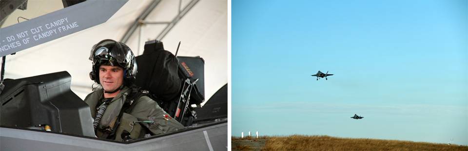 Sinds kort zijn er 4 Nederlandse vliegers opgeleid voor de F-35. Majoor Pascal Smaal (foto l.) maakte als vierde Nederlandse vlieger zijn eerste solovlucht op 19 november in Florida. De vlucht vanaf Eglin AFB met kolonel Bert de Smit als instructeur in een ander F-35 (foto r.), duurde ongeveer 1,5 uur. Smaal: “Bij het opstijgen merkte ik al hoe krachtig en gebruiksvriendelijk het toestel is. Mijn eerste solovlucht ging erg goed en soepel, mede dankzij handige features als de ‘auto-throttle’, waarmee de snelheid automatisch wordt geregeld.” Smaal rondt naar verwachting begin december zijn opleiding tot vlieginstructeur af. Vervolgens neemt hij vanaf januari 2015 deel aan de operationele test- en evalutiefase van de F-35 op Edwards Air Force Base in Californië. Hier gaan zowel de vliegers als ook het technisch personeel naartoe. Foto: 323 Squadron