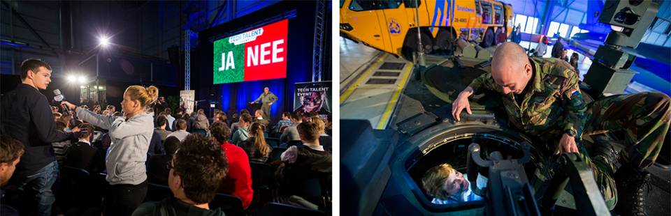 “Mijn leven was 25 jaar lang afhankelijk van luchtmachttechneuten,” trapte luitenant-generaal Sander Schnitger zijn speech af op het Tech Talent Event van Defensie. “Ik kon ze blind vertrouwen en bracht dankzij hen elke F-16 die ik meenam weer heel terug.” De Commandant Luchtstrijdkrachten (C-LSK) is één van de militairen die op het wervingsevenement probeert jonge hoogopgeleide techneuten Defensie binnen te praten.