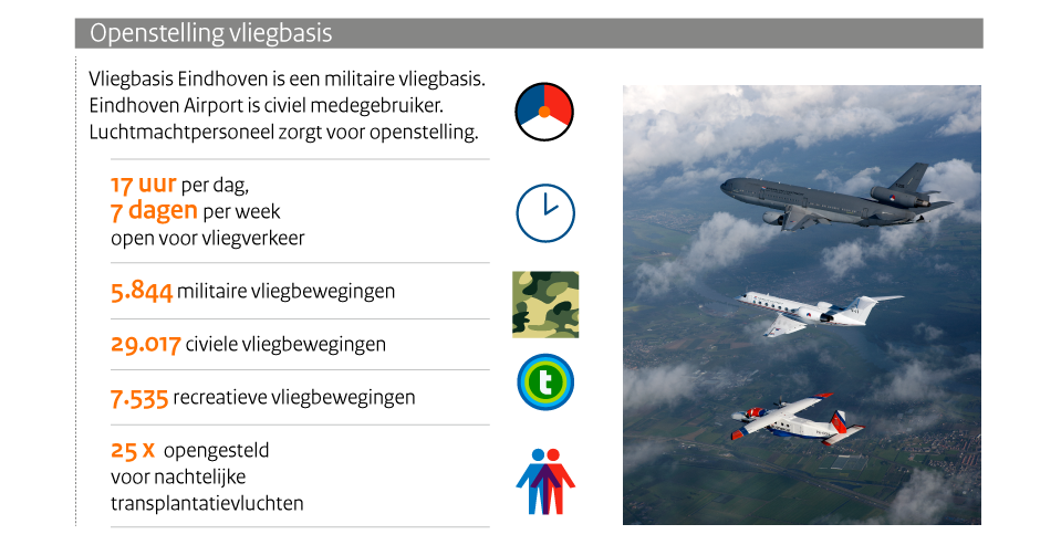 Welke militair ook op uitzending gaat, de route gaat vrijwel steevast via de vliegbasis Eindhoven. Op die manier heeft iedereen binnen de KLu wel met dit knooppunt van de militaire luchttransport te maken. Maar er gebeurt veel meer op deze vliegbasis annex civiele luchthaven. Vrachtvluchten, tanker-operaties, vele duizenden commerciële vliegbewegingen; 17 uur per dag, 7 dagen per week is de basis in touw. En daarbij nog 25 keer per jaar ’s nachts.