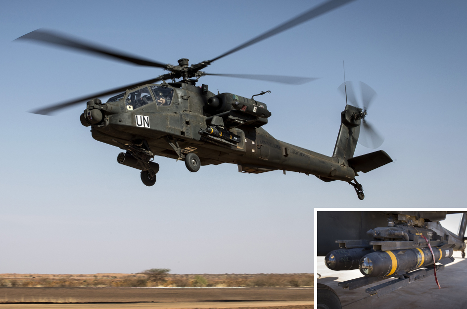 Daarna rapporteerden de blauwhelmen dat ze werden beschoten. We namen toen ook een raketlanceersysteem waar. Vanuit onze kisten zagen we de MNLA het systeem opbouwen, laden en afschieten. De Bengalezen rapporteerden meteen een inslag binnen 100 meter van hun kamp. Na eerst waarschuwingsschoten te hebben afgevuurd, voerden we een aanval uit. We schoten een Hellfire (zie kader, red.) op het systeem.”