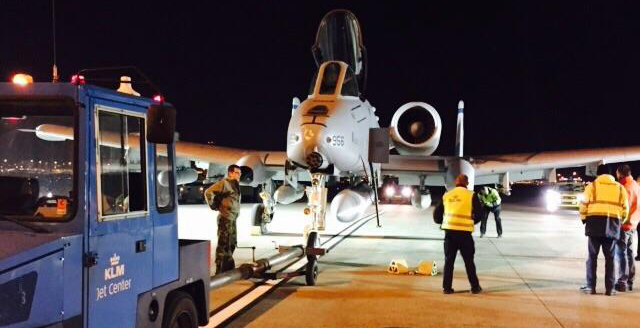 De A-10 Thunderbolt is speciaal uitgerust voor het vernietigen van pantservoertuigen en tanks. De Amerikaanse luchtmacht is de enige gebruiker van dit type vliegtuig. In verband met de stijgende spanning tussen Europa en Rusland, stuurt de USAF telkens voor de periode van 6 maanden, extra jachtvliegtuigen naar Europa. Ze doen hier onder andere mee aan diverse oefeningen. Foto’s: KLu