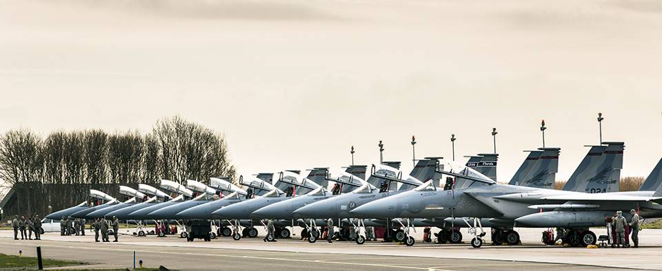 Vollmecke geeft aan dat de situatie in de wereld duidelijk verandert, en daarbij ook zijn eigen luchtmacht. “De USAF is de afgelopen 20 jaar zeer sterk ingekrompen. Veel eenheden zijn opgeheven of teruggetrokken, bijvoorbeeld uit Europa. De USAF is nu meer een expeditionaire luchtmacht. Deze F-15’s vormen een deel van het zogenoemde Theater Security Package als ondersteuning van Operation Atlantic Resolve. Daarmee kunnen we overal ter wereld ondersteuning bieden. Dat is wat we nu dus doen bij onze bondgenoten, in Azië en Europa, voor inzet of oefeningen.”