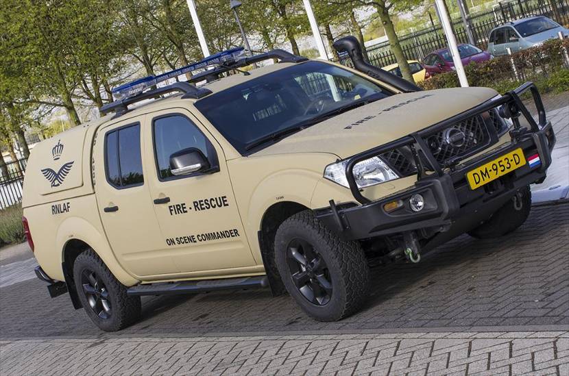 Vorig jaar is bij MatlogCo de behoefde gesteld die vervolgens 2 standaard witte Nissan Navara’s aanschafte. De firma Veth bouwde op tot operationele commandovoertuigen in de kleur Tundra beige en voorzien van optische en akoestische signalen, oorlogsverlichting, scherfwerende matten en communicatie middelen. De OSC-voertuigen worden samen met de Bulls ingezet tijdens expeditionair optreden van de CLSK-brandweer. Bij verlenging van de missie’s in Mali en het Midden-Oosten worden ze ook daar ingezet. Foto: KLu