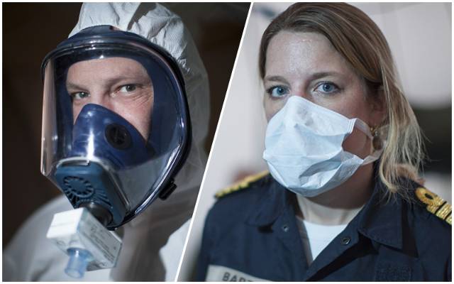 “Een bio aeromedevac is een aaneenschakeling van procedures”, legt Jacobine uit. “Als je die rustig en minutieus doorloopt, kun je een patiënt veilig vervoeren.” Sergeant 1 Marco krijgt dan ook geen klamme handen van het vooruitzicht te werken met ebola-patiënten. “Als je de richtlijnen volgt, kan er niks misgaan”, zegt de AMV’er. “Dit is juist waarom ik normaal gesproken een groen pak draag en ik niet in een gewoon ziekenhuis werk.”