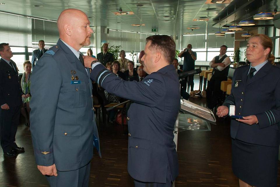 Sergeant 1 Paul Raijmann heeft onlangs het Draaginsigne Gewonden ontvangen. Dat gebeurde in bijzijn van zijn familie, vrienden en collega’s. Plaatsvervangend commandant Luchtstrijdkrachten generaal-majoor Emile van Duren speldde het eremetaal op.