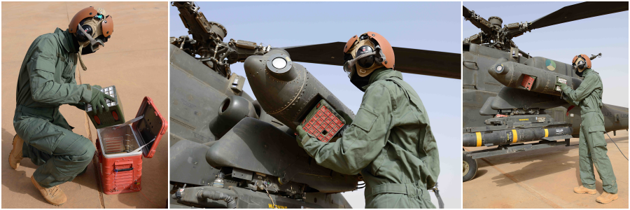In Gao staan vier bemanningen beschikbaar voor evenzoveel Apaches, net als 3 bemanningen voor de Chinook voor dito exemplaren. “In de opstartfase van de missie doorliepen we allemaal de oefening ‘Hot Blaze’ in Spanje”, zegt Apache-vlieger kapitein Ruben. “Zeer nuttig voor ons, omdat we hier dagelijks met brown outs te maken hebben” vult Chinook-vlieger kapitein Wouter hem aan. Maar om Apache en Chinook samen met de Maritime Special Operations Forces écht als team te laten optreden, oefenen de drie entiteiten twee weken samen in Fort Hood in Texas en daarna nog in Nederland. De oefeningen ‘High Blaze’ en ‘Snow Blaze’ zijn geen onderdeel van de opleiding, hoewel beide vliegers het eens zijn over de wenselijkheid om Snow Blaze toe te voegen. Tijdens deze oefening leren bemanningen vliegen in slechte weersomstandigheden met weinig of zeer slecht zicht. In dat geval is de overeenkomst tussen sneeuw en zand groot.