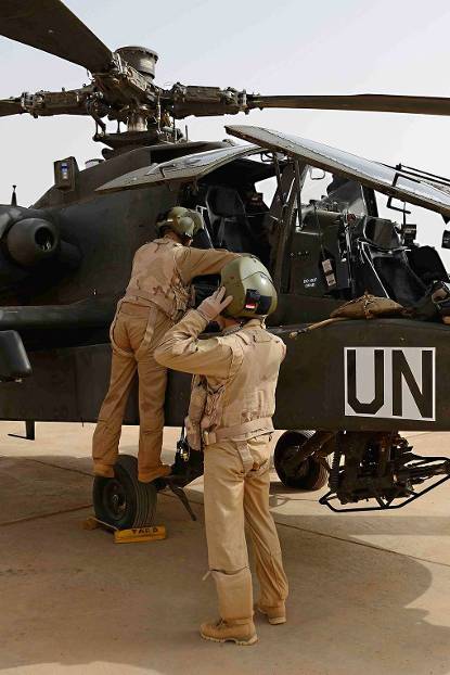 De belangrijkste taak van de Apaches is nog steeds verkenning en informatie verzamelen voor de VN. “Dit platform is daarvoor uitermate geschikt”, zegt luitenant-kolonel Hans Alferink, Commandant Helidet 5. “Apaches zijn de ogen en oren van de VN. De Chinooks worden met name ingezet voor Medevac-en luchtvervoer.” Hij geeft aan dat er een duidelijk verschil is met voorgaande inzetten van de helikopters in Afghanistan. “Daar vlogen we onder de vlag van ISAF, uitgevoerd door de NAVO en gemachtigd door de VN. Minusma is echter een zuivere VN-missie. Dat is anders. Het vergt bijvoorbeeld meer contacten via telefoon en mail. De VN heeft meer regels en procedures, waardoor het administratieve gedeelte groter is dan in Afghanistan.”