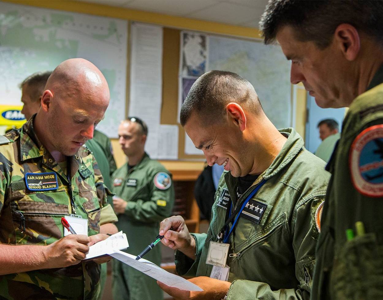 Het verzoek van Polen kwam binnen bij de AAR-cell van het MCCE, legt tanker planner kapitein Edward uit. “Tankers zijn zeer schaars, maar wij kijken of er een beschikbaar is. KDC-10’s van het 334 Squadron zijn gelukkig heel flexibel inzetbaar.” De aanvraag biedt ook nog een andere mogelijkheid. Edward: “Tankers en receivers zien elkaar normaliter alleen in de lucht. Voor een goede feedback moet er directe interactie zijn tussen tanker- en receiver-bemanning. Doe je dat niet, dat wordt onbekend, onbemind. Dat geldt voor beide kanten. Daarom vliegen we nu tankermissies vanuit transportbasis Powidz in Polen: 3 met daglicht en 3 in het donker.”