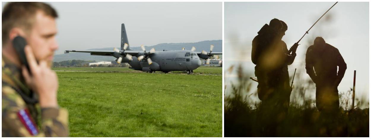 De eenheden bekwamen zich in het aanleveren van vracht voor de C-130 en het verwerken daarvan na het afwerpen, daarbij gesteund door het Pathfinderpeloton. Het lijkt een kleinigheid, het spannen van een net om de lading. Glenn en zijn collega specialist luchtvracht sergeant 1 Freddy weten echter als geen ander dat het bij het aanbieden van de vracht om details gaat. “De oefening draait met zowel onze C-130 als een Duitse C-160”, zegt laatstgenoemde. “Bij de Hercules reken je in Amerikaanse pounds, bij de Transall en straks de A400 in kilo’s. Ik bedoel maar.”