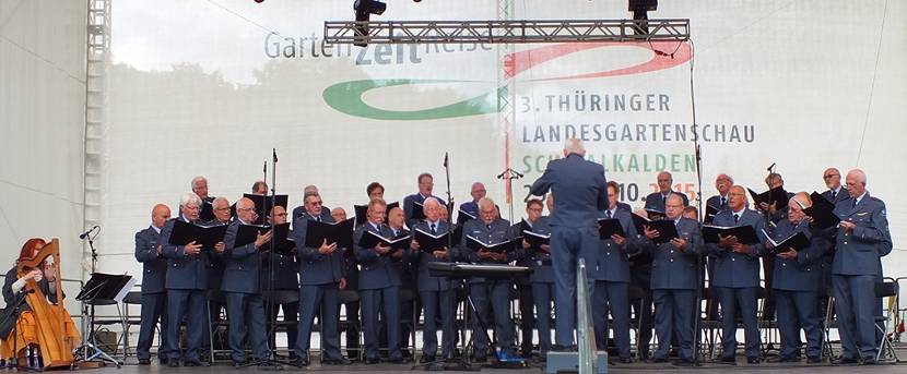 Duitsland heeft een grote korencultuur en het Luchtmachtmannenkoor (LMK) reist dan ook regelmatig naar Duitsland voor uitvoeringen. Dat doet het koor in samenwerking met de NAVO-partners van de Bundeswehr, onder andere ter ondersteunen van goede doelen. Dit jaar gaf het LMK op uitnodiging van de commandant Werratalkaserne in Bad Salzungen, op 17 en 18 september enkele concerten in die Regio.