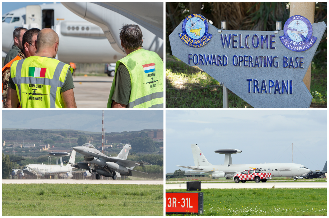 Met al die vliegtuigen in de lucht is een AWACS. De vloot op Geilenkirchen heeft diverse Forward Operating Bases, zoals op Trapani, Sicilië. Die wordt volop gebruikt tijdens TJ15. "De inzet van de AWACS is alleen voor het Italiaanse deel van de oefening. Wij begeleiden dan ook hoofdzakelijk de fighters die eveneens op Trapani staan", zegt majoor Hans Jacobs. Hij is Tactical Director op het vliegende radarstation, en daarmee verantwoordelijk voor de uitvoering van de missie. "Het voordeel om vanaf dezelfde basis te opereren, is het face-to-face briefen en debriefen. We kijken elkaar dagelijks voorafgaand en na de vlucht in de ogen en spreken alles door, wat goed gaat en fout."