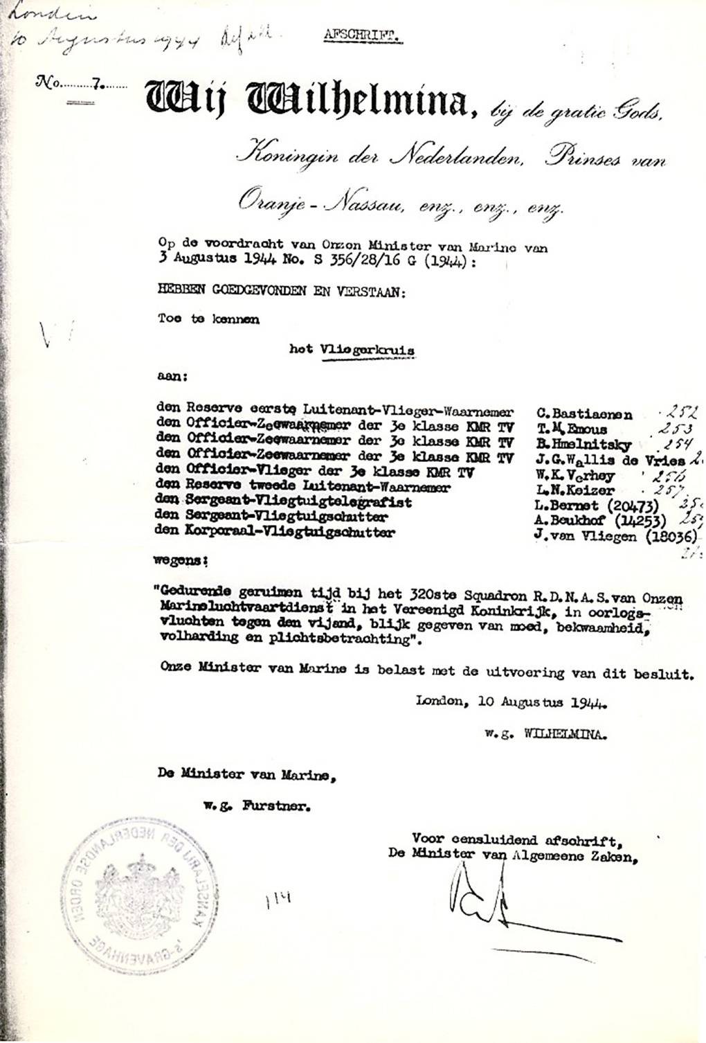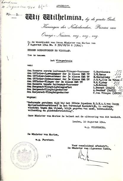 Functie destijds: mitrailleurschutter op de Lockheed Hudson en later op de B-25 Mitchell bij het 320 (Netherlands) Squadron Royal Air Force.