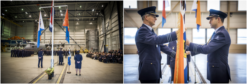 Luitenant-kolonel Marco van Praat droeg op 29 januari het commando over het 336 Squadron over aan overste Mark de Wit. Van Praat was 4 jaar commandant en is nu Hoofd Afdeling Luchttransport en Tanker-operaties op de Staf Commando Luchtstrijdkrachten in Breda. Op die afdeling was De Wit in zijn vorige functie werkzaam als Hoofd Sectie Luchttransport en Tanker-operaties. Foto’s: Leonie Voets