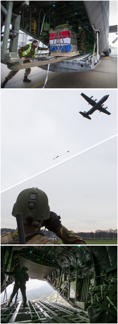 De luchtmacht mag boven Nederland wel parachutisten droppen, maar er is nog geen plek om met goederen te oefenen. Het was dan ook een uitzondering om dit op Deelen te beproeven. 336 beoefende dit al wel eerder in Italië en Portugal. De airdrop is van groot belang voor troepen in het veld die bijvoorbeeld munitie en brandstof nodig hebben. Ook bij humanitaire missies is de airdrop een goed middel om voedsel, medicijnen, dekens en andere goederen op de plaats van bestemming te krijgen.