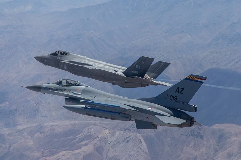Terugkijkend op de introductie van de F-16, ooit, ziet luitenant-kolonel vlieger Jack van Heijst grote verschillen. Als medewerker Requirements Integrated Production Teams van het JPO houdt hij zich vanuit Washington bijvoorbeeld bezig met ‘warfighter integration’. Om wat te noemen: de aanpassing van vliegvelden voor de komst van de F-35. “Bij de F-16 stapten we in de eerste productiefase in, nu veel eerder. Zo hebben we de Nederlandse industrie kunnen meenemen. Als land moet je echt ‘een plek op het vliegtuig verdienen’. Inmiddels heeft de Nederlandse industrie al voor meer dan 1 miljard euro aan orders ontvangen en de industrie schat in dat de hele productie kan uitkomen op 8 tot 11 miljard. Zo levert Fokker Elmo bedrading en Fokker Aerostructure stuurvlakken en inflight opening doors.”